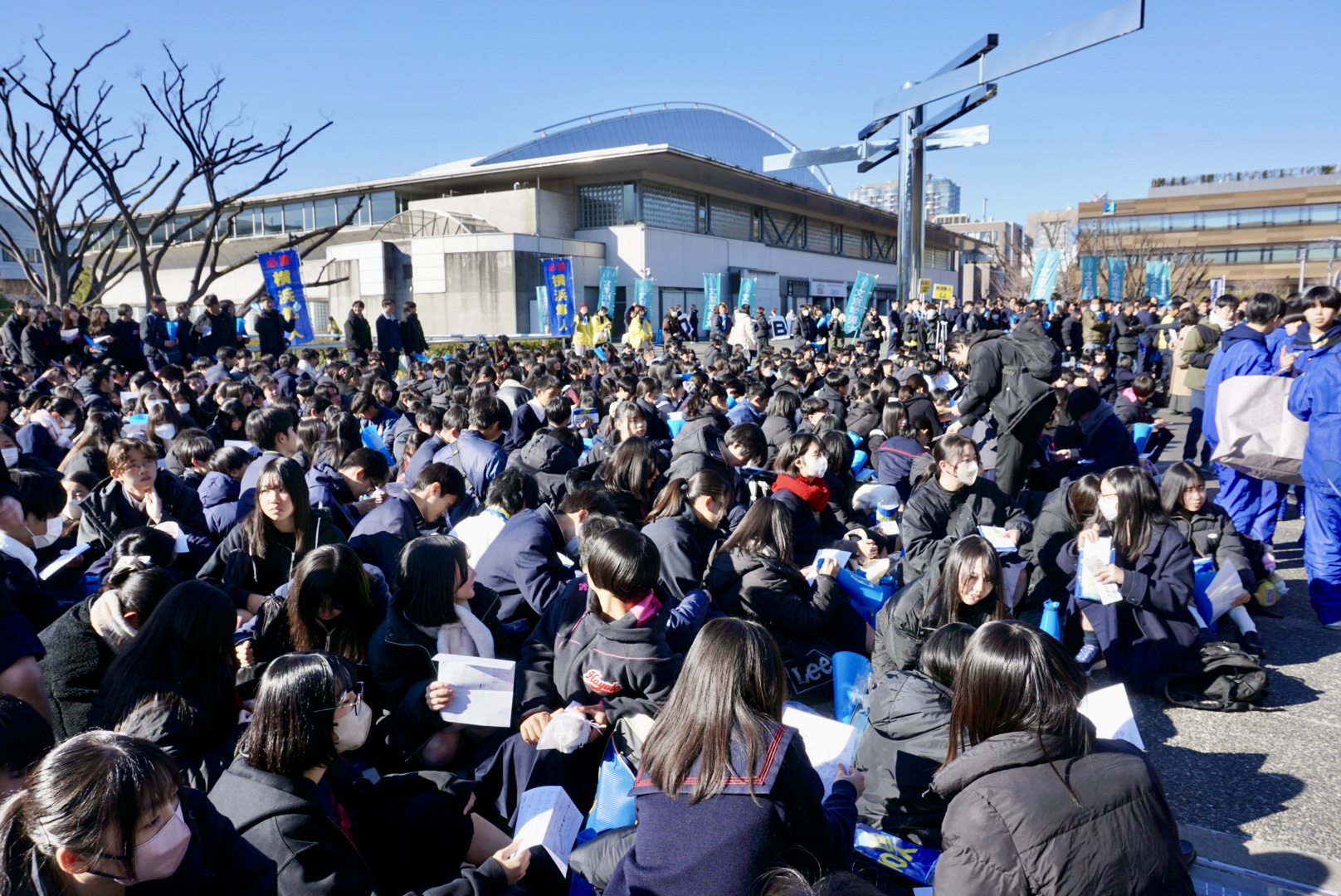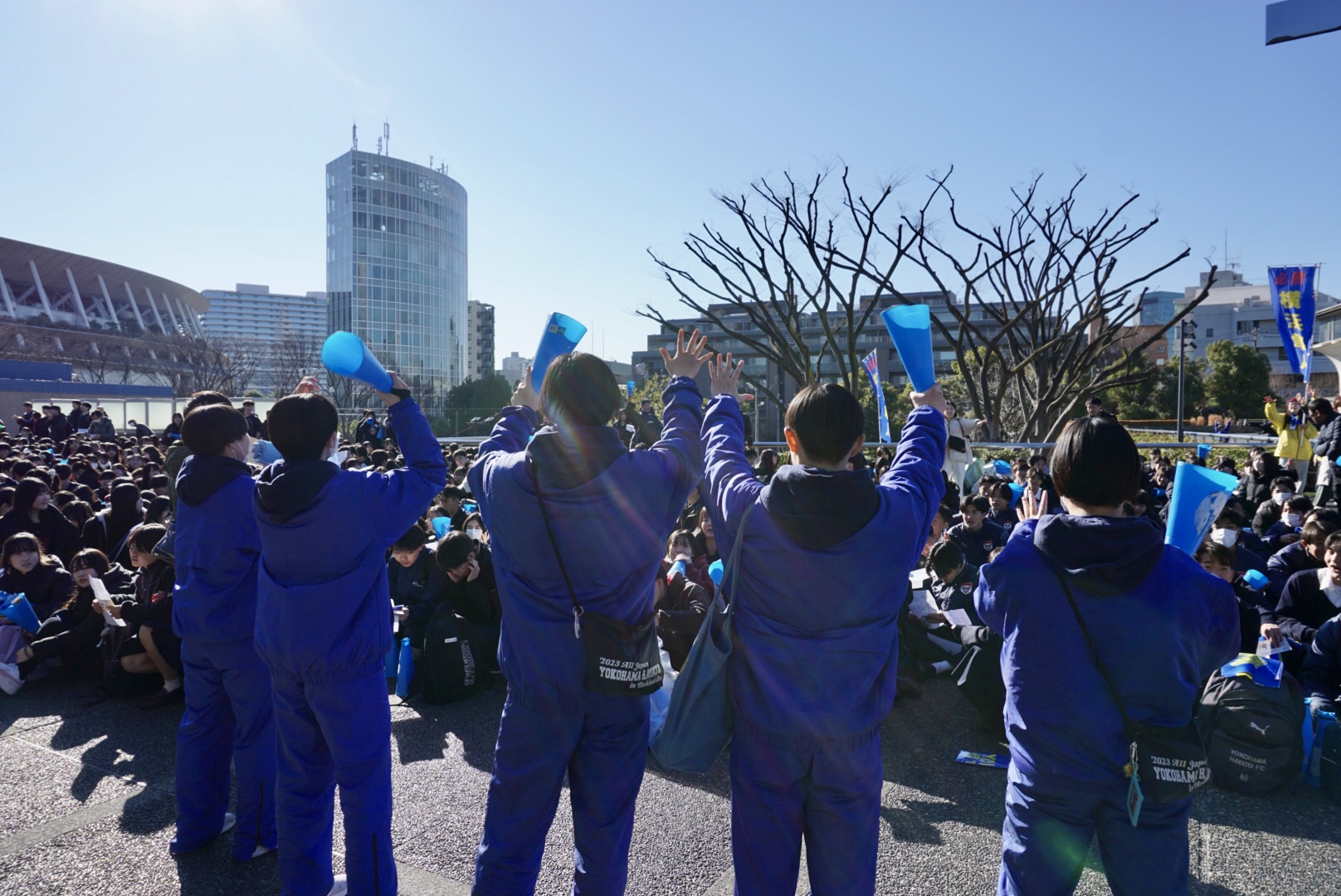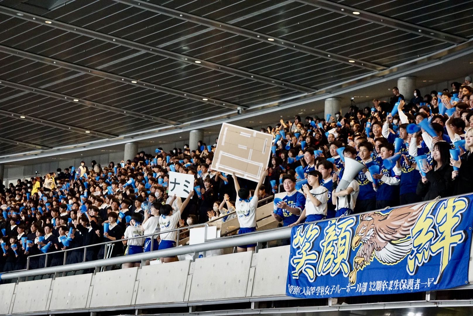 本日は学年応援で東京体育館へ!また、平日にも拘わらず、卒業生や喜一会の皆さん、理事長はじめ学園関係者を含むたくさんの方々も集結し、『喜愛』の入った約1,000名の大応援団が結成!大声援が響き渡りました!!!皆さん、温かいご声援ありがとうございました!