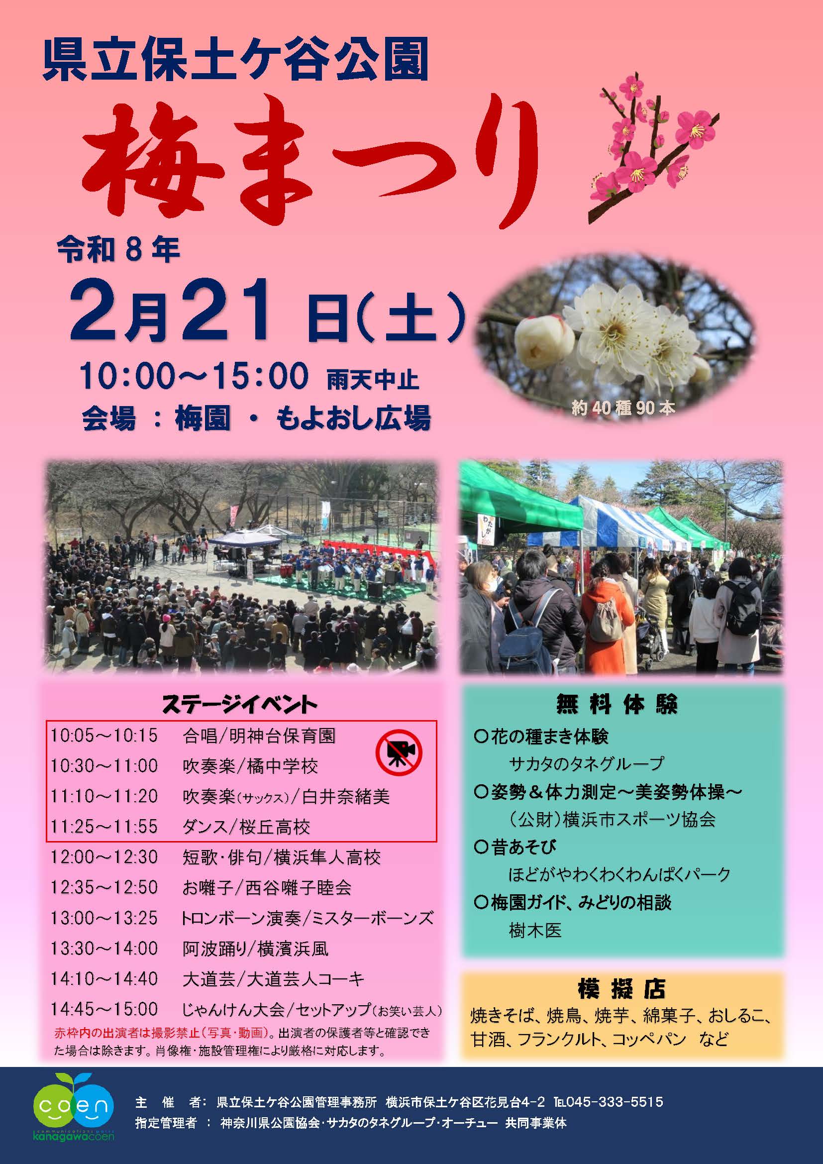 2月21日(土)12時 ~ 12時半、県立保土ヶ谷公園「梅園・もよおし広場」にて行われる『梅まつり』にステージ出演いたします!短歌や俳句に親しみが持てるような楽しいステージを展開します。
