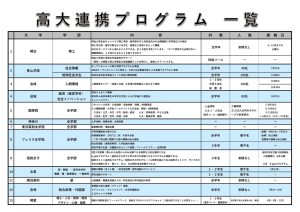 本校では、早い段階で本校生徒に大学レベルの教育研究に触れる機会を提供するために、高大連携を進めています。この高大連携プログラムは、現在の高校での学習が、大学での学びやさらに社会に出たときにどのように繋がるのかを考える機会です。大学の先生方による講義、キャンパスツアーと研究室見学、入試説明会などの企画を提供します。本校の卒業生が参加するプログラムもあります。