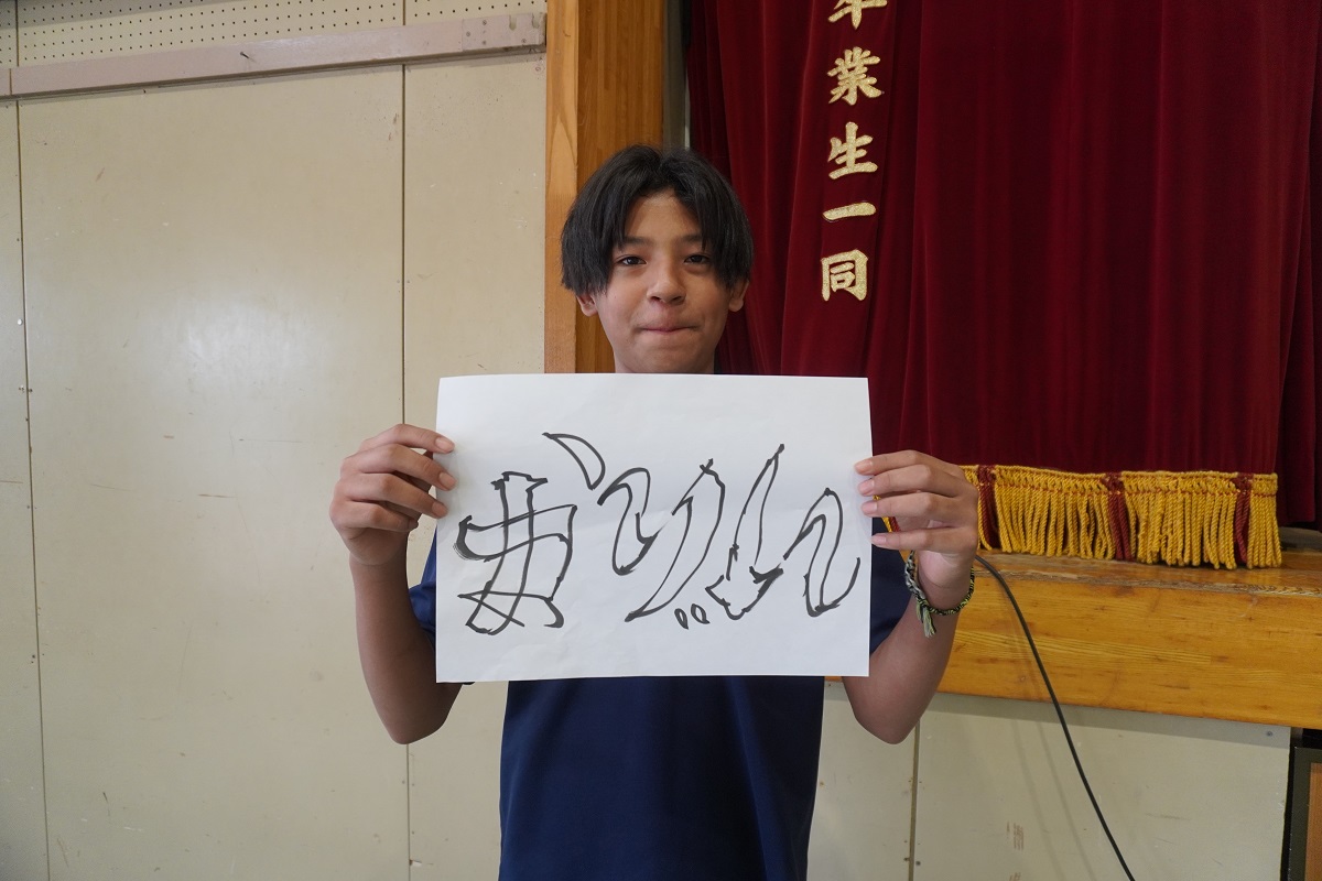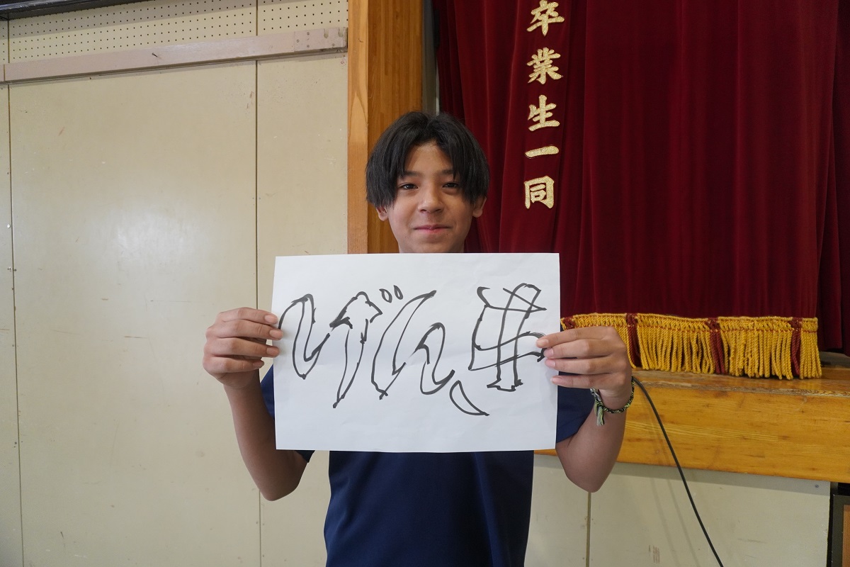 お話の最後には、代表生徒の名前をアンビグラムしていただきました!