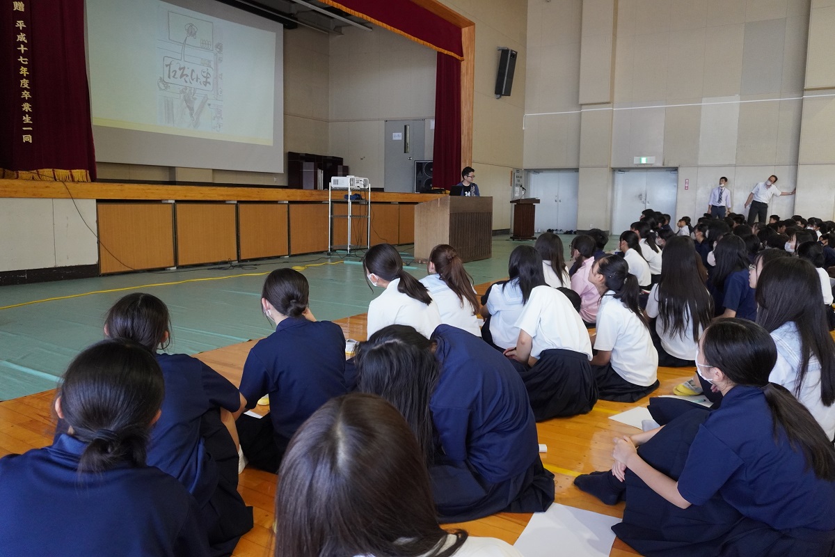 7月20日に広学講演会として、中学生対象にアンビグラム作家・野村一晟さんにお話をしていただきました。