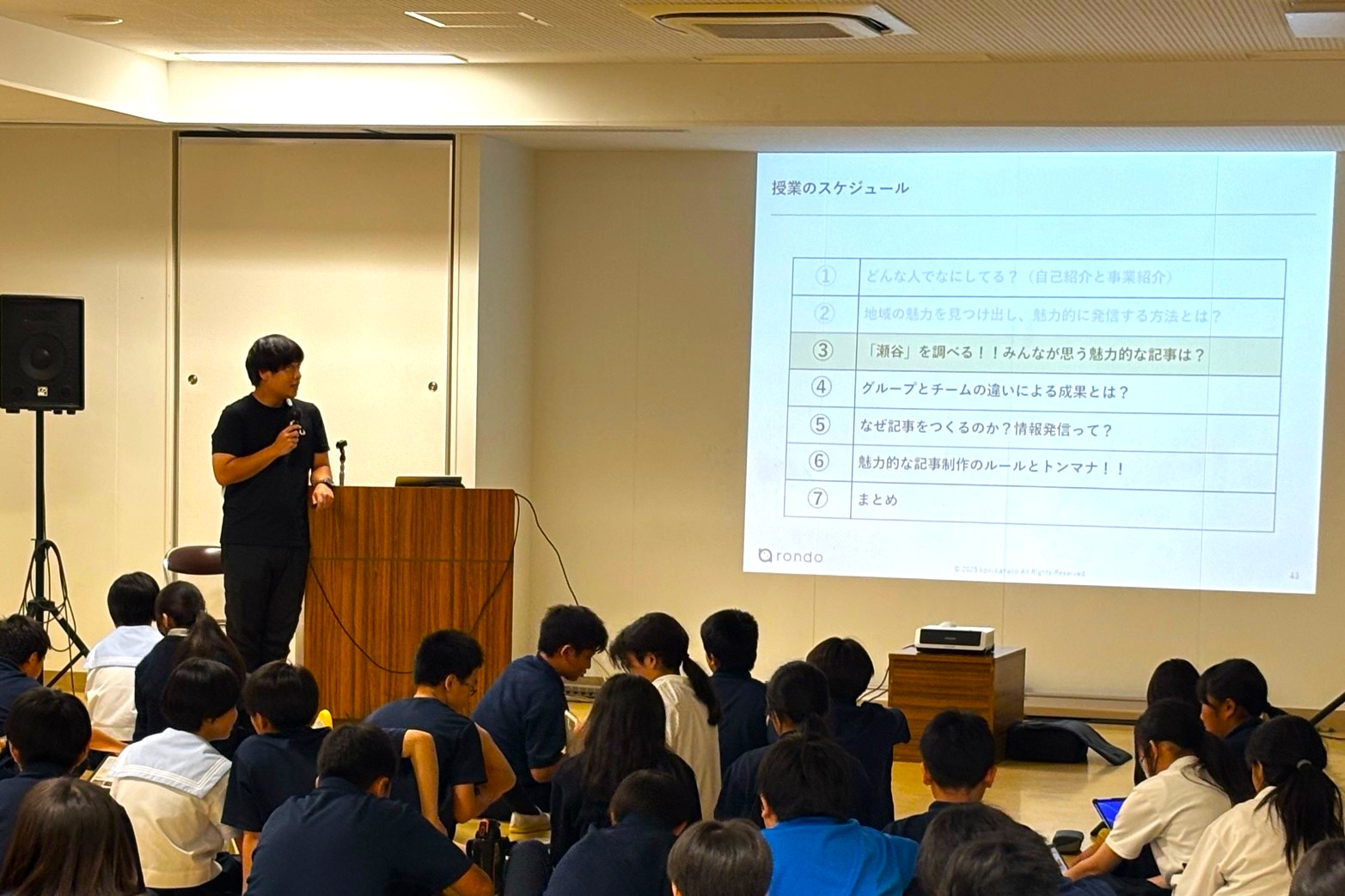地域資源を発掘していくとはどういうことか、また、どのようにして仲間と協力しながら魅力的な記事をつくっていくかといった探究的な視点についても、チームとグループの違いなどに触れながら、楽しく分かりやすく話してくださいました。
