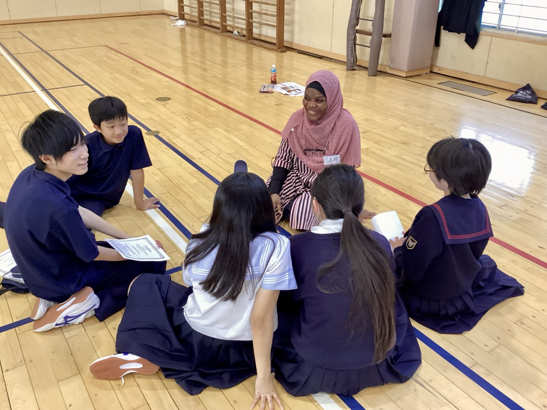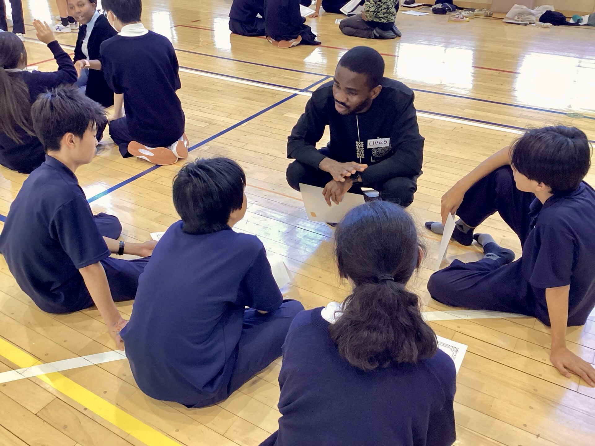 1日目:留学生と交流しながら、英語で自己紹介やゲームをして、親睦を深めました。
